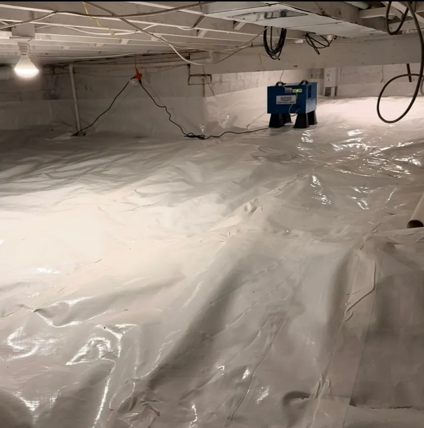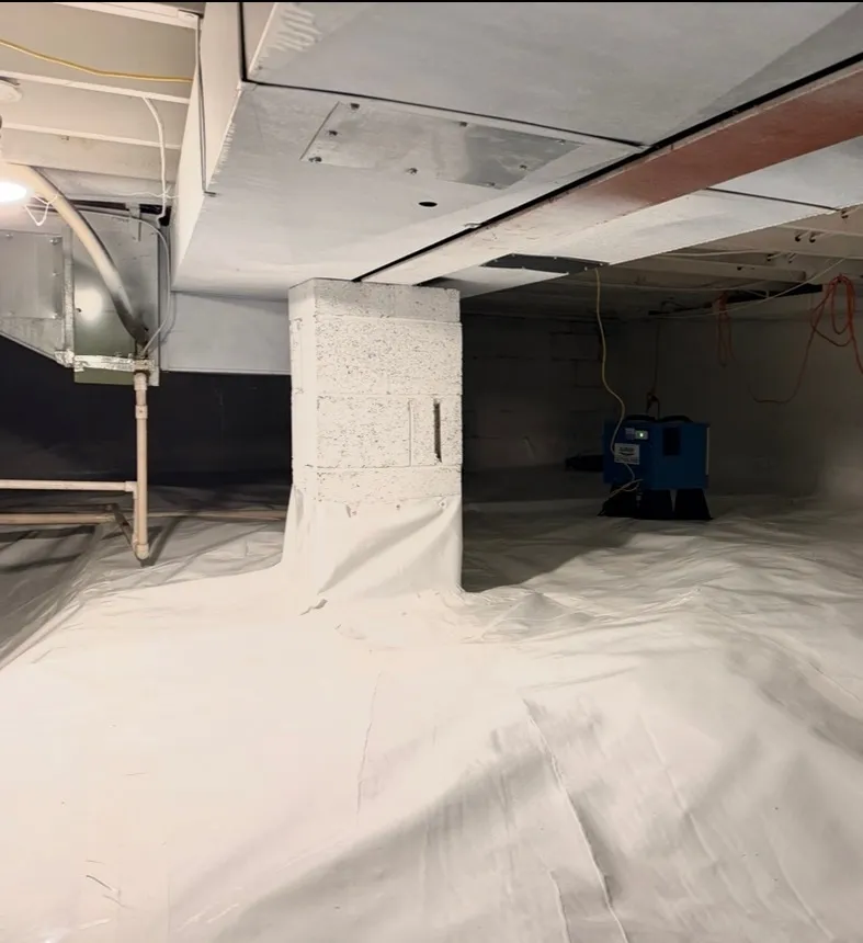 This Fox Chapel home has had multiple additions over the years. With each addition, came a large crawlspace underneath the living area. The moisture level in these areas was off the charts. Even the best dehumidifiers at the local big box store are ineffective for such issues. Our guys installed over 1200 ft.² of heavy mil, vapor barrier throughout the crawlspace area. Our guys also installed high-end dehumidifier/air purification units. These units not only help control the moisture, but also provide air purification, and a very convenient, remote control, allowing you to adjust as necessary without having to crawl around. With our work complete, not only will the moisture level in the crawlspace, and moisture carrying upwards to the living space, be controlled, but we have also created a usable space for storage without the worries of moisture damage.